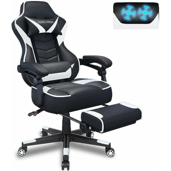 Fullwatt Computer Gaming Chair with Footrest and Adjustable Arms Reclining Swivel Chair, Desk Chair High Back with PU Leather for Home Office, white