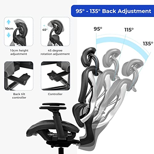 【Adjustable Ergonomic Design】Ergonomic home office chair is based on the human body dynamic digital model. The backrest fits the spine better, which helps reduce back stress and muscle fatigue.Adjustable headrest, lumbar beef up and 3D armrests provide you better beef up whilst sitting on our ergonomic office desk chair. You’ll be able to choose 95°-135°to tilt the backrest, Pneumatic controls make it easier to raise or lower the seat.