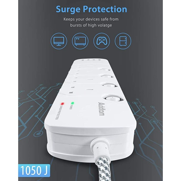 【4 Individual Outlet Switch】– This energy-saving surge power strip with 4 AC outlets and independent keep watch over switch allow bring to a halt power to unused devices, saving you energy and money.