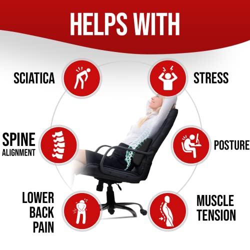 Ergonomic Design – Orthopedic design supports better posture by adjusting to your natural back curve. This helps alleviate pressure at the sciatica nerve to reduce mid/ lower back pain, muscle tension and helps with spine alignment, and overall stress relief.