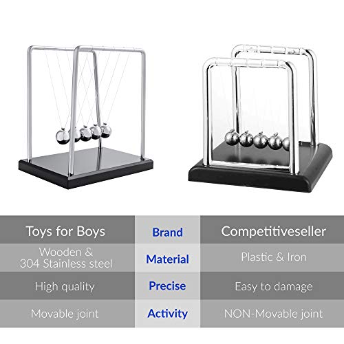 Newton’s Cradle Desk Toy Pendulum Ball Swing Large 19cm Swinging Balls Pendulum Wave Wooden Base Stainless Steel-Stress Relief Gift Office Desk Gadgets Physics Science Home Decorations Toys4boys