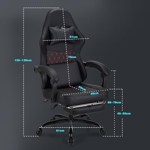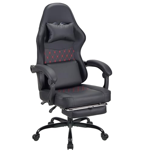 T-THREE.High Back Ergonomic Computer Chair,Gaming Chair,Office Chair,Desk Chair,Swivel Chair,Racing Chair,Adjustable Lumbar Support and Headrest,Withstands up to 150 Kg,With Footrest(Red)