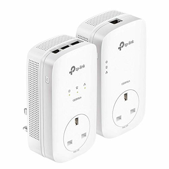 TP-Link TL-PA8033PKIT AV1300 3-Port Gigabit Passthrough 2×2 MIMO Powerline Adapter Starter Kit, No Configuration Required, UK Plug